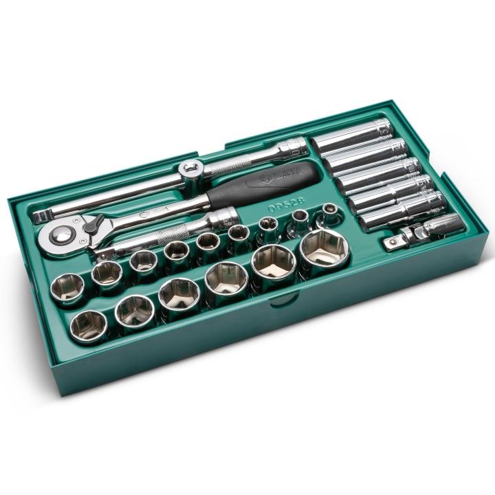 SATA ,25 PC. 1/2″ DRIVE 6 POINT SAE SOCKET TRAY SET