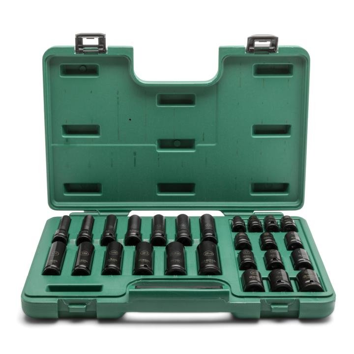 SATA, 26Pcs 1/2″ Drive 6 Point Metric Standard & Deep Thin Wall Impact Socket Set