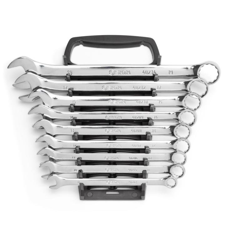 SATA wrenches come in essential standard and metric sizes and are available in convenient sets. Perfect for any technician’s, electrician’s or mechanic’s toolbox, these high-quality wrenches are ideal for diesel mechanic’s, heavy equipment, agricultural machinery, auto repair; or removing heavily rusted, stuck-on nuts and bolts. Thick and thin beams and multipurpose, closed-loop designs allow you to firmly grip the tool with ease to tighten and loosen hex or square nuts and bolts. Additionally, with a lightweight makeup, you don’t need to compromise on power. The laser-etched measuring scale on the tool helps you quickly identify the right size. For added convenience, tool rolls or organizers let you carry your tools hassle free when you’re on the go. The full-polished chrome finish offers a clean, modern look. Covered by a lifetime warranty, SATA wrenches help you get the job done.