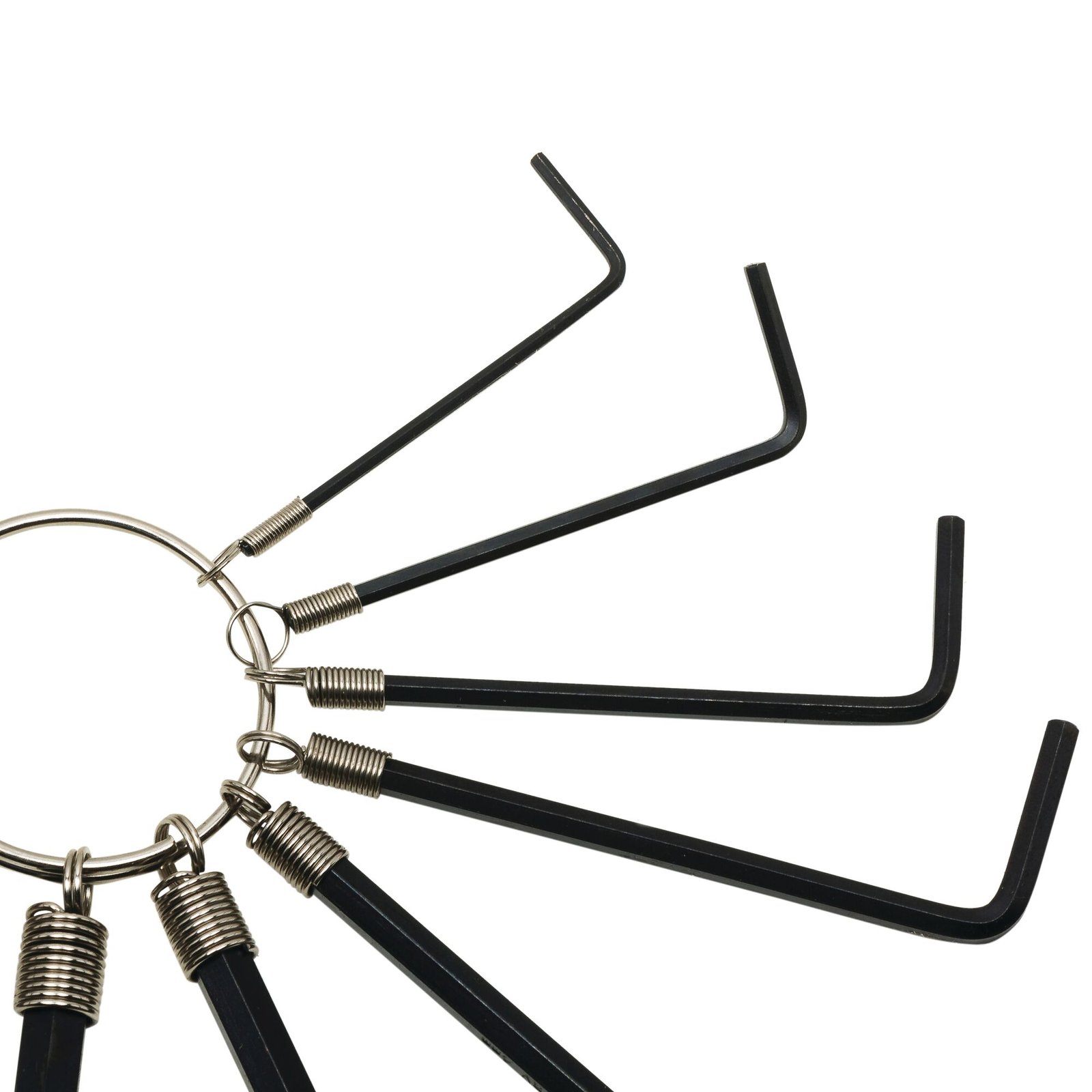 The STANLEY® Hex Keys on ring Set of 10 pc., has a black phosphate finish for a long life and chrome vanadium steel for strength and corrosion resistance. The anti-corrosion treatment ensures low risk of rust, while the spring fixing allows for easy removal and assembly. The set comes in convenient, hangable and visible packaging, including the most common sizes in one set for convenience and accessibility. All 10 ring sizes are fixed together.
